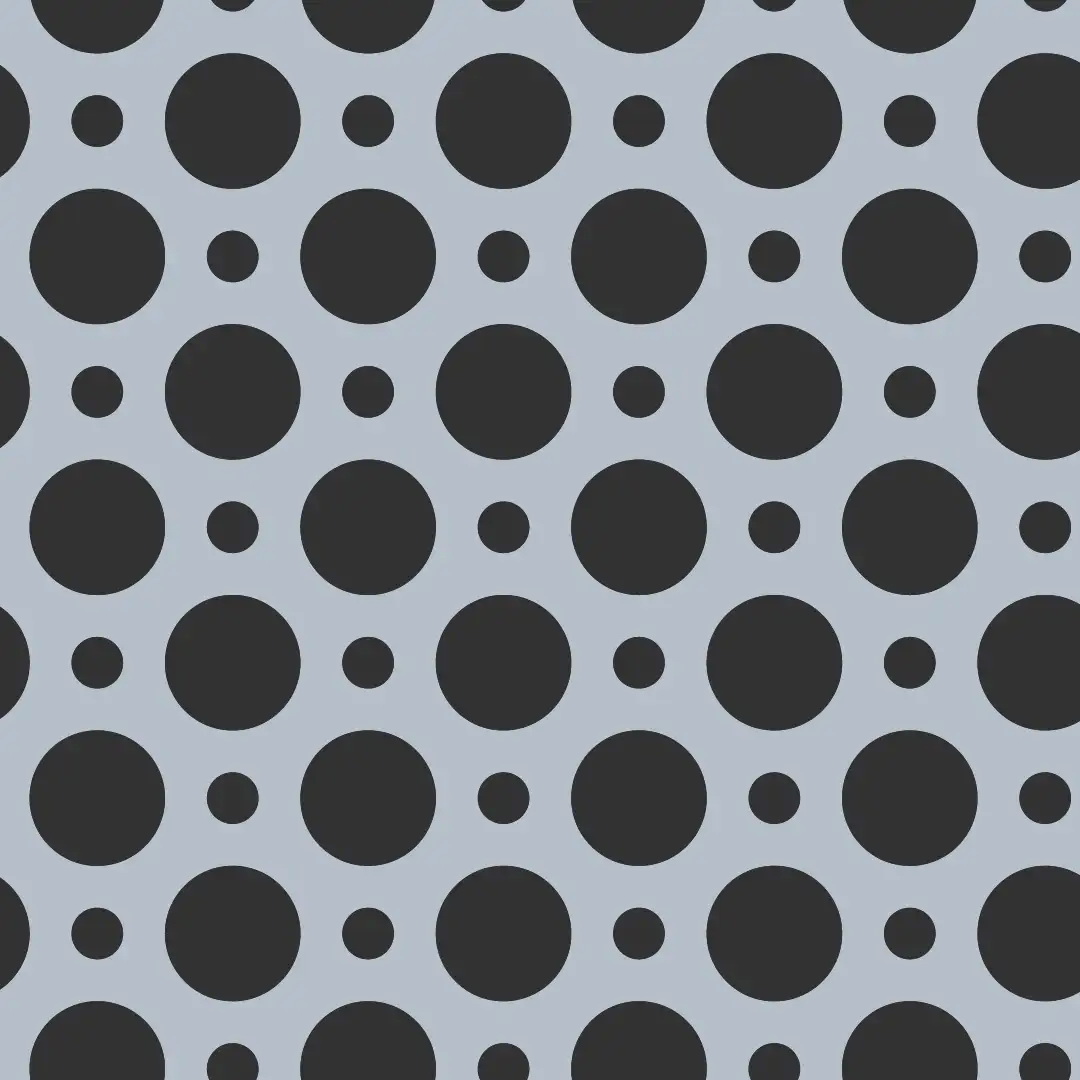 Geometric round pattern. General purpose perforated metal sheet with 2 sizes of holes to create an attractive round pattern. It has a variety of functional uses: Seive, vertical screening, grill, infill panels and is also a great decorative screen.