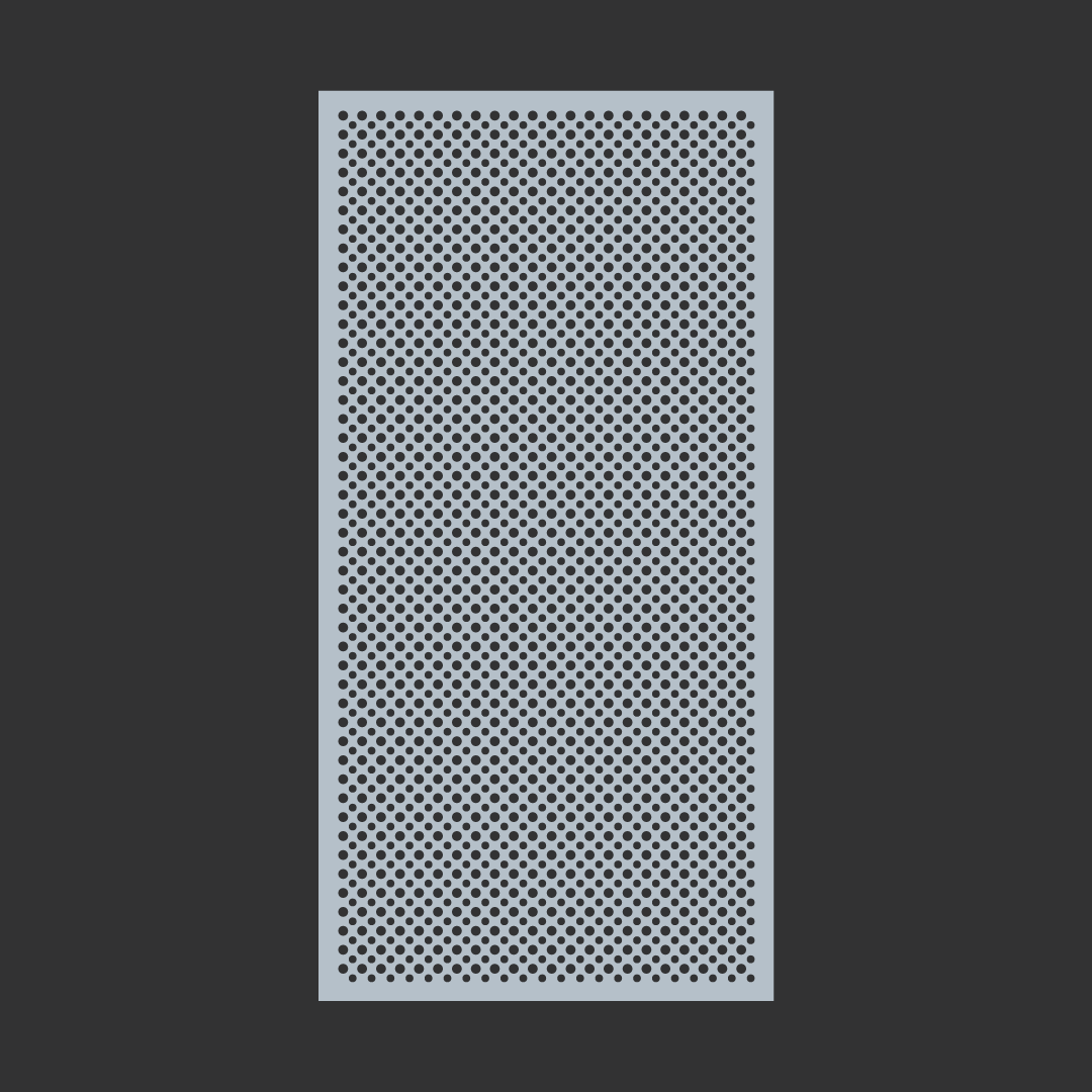 Geometric round pattern with 2 different sized holes. It has a variety of functional uses: Seive, vertical screening, grill, infill panels and is also a great decorative screen.