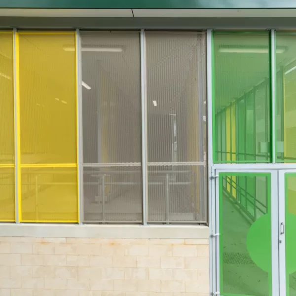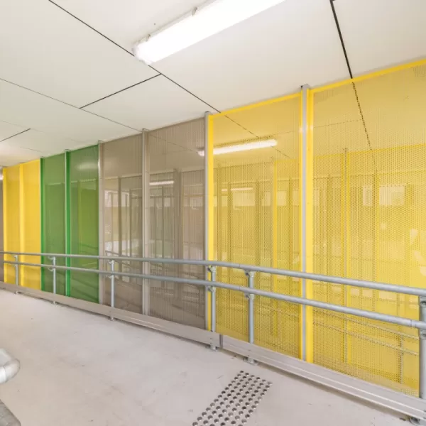 Powdercoated aluminium screens help deliver the architects vision for the colours being a key feature of the new building.